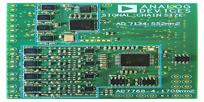 由于顯著減少了設(shè)計元素的數(shù)量,因此實現(xiàn)精度性能的努力非常少。這樣可以縮短設(shè)計時間,縮短客戶產(chǎn)品上市時間,簡化BOM管理并提高可靠性。卸下抗混疊濾波器,驅(qū)動器和參考緩沖器將大大減少系統(tǒng)板的面積。儀表放大器可用于直接驅(qū)動ADC。例如,對于AD7134,由于它是僅差分輸入的ADC,因此它具有差分儀表放大器,例如LTC6373可以用作驅(qū)動程序。圖14中的比較顯示了基于離散時間的信號鏈和基于連續(xù)時間的信號鏈的信號鏈。與等效的基于離散時間的信號鏈相比,我們的實驗表明節(jié)省了70%的面積,這使其成為高密度多通道應(yīng)用的絕佳選擇。