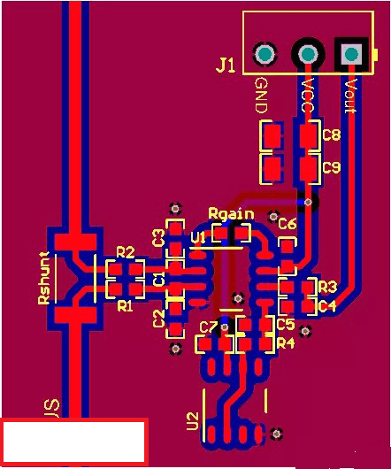 在圖7中,可以看到R1和R2到分流電阻器的線長相同,并且使用了開爾文連接。INA引腳的增益設置電阻盡可能短,基準緩沖電路盡可能靠近基準引腳。